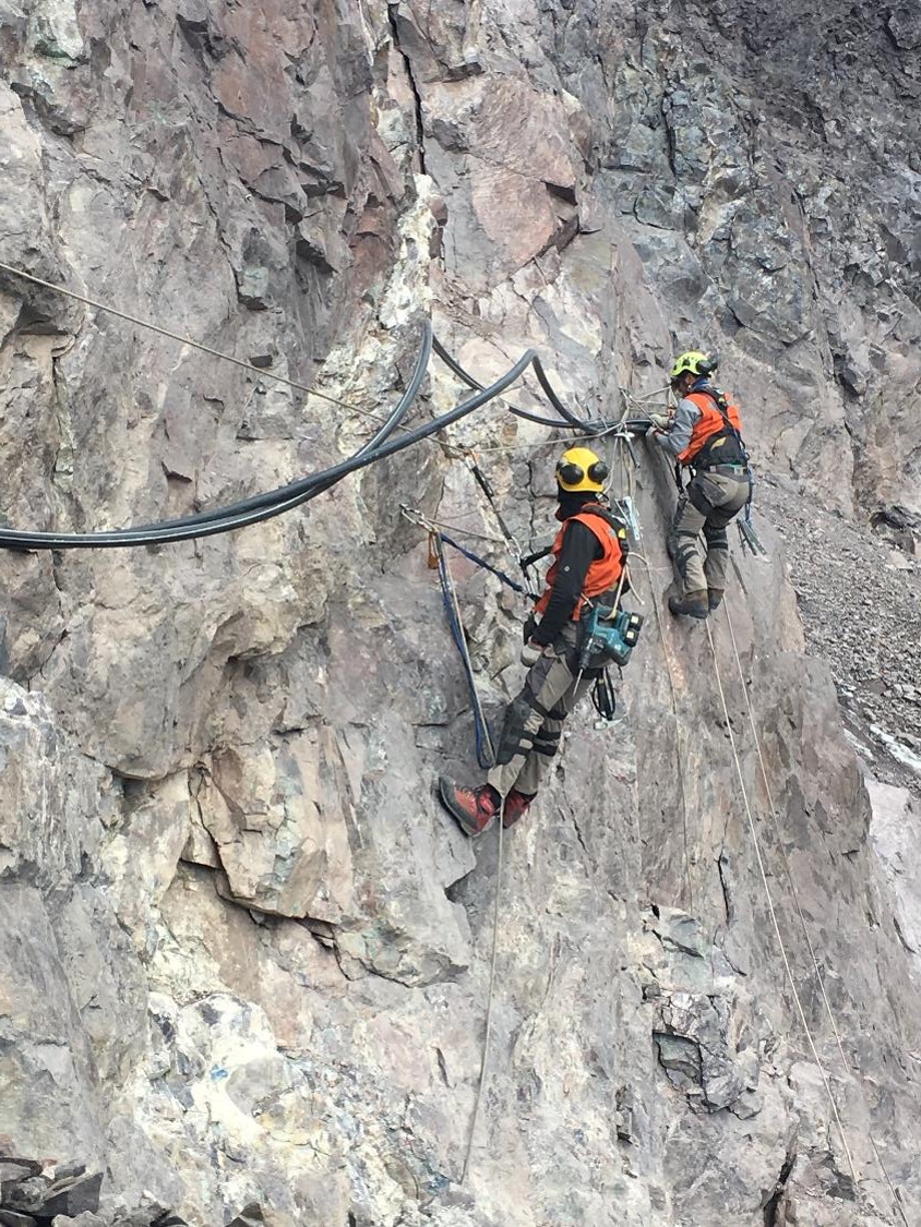 - Servicio de acuñamiento y saneamiento de bancos mineros y taludes verticales.